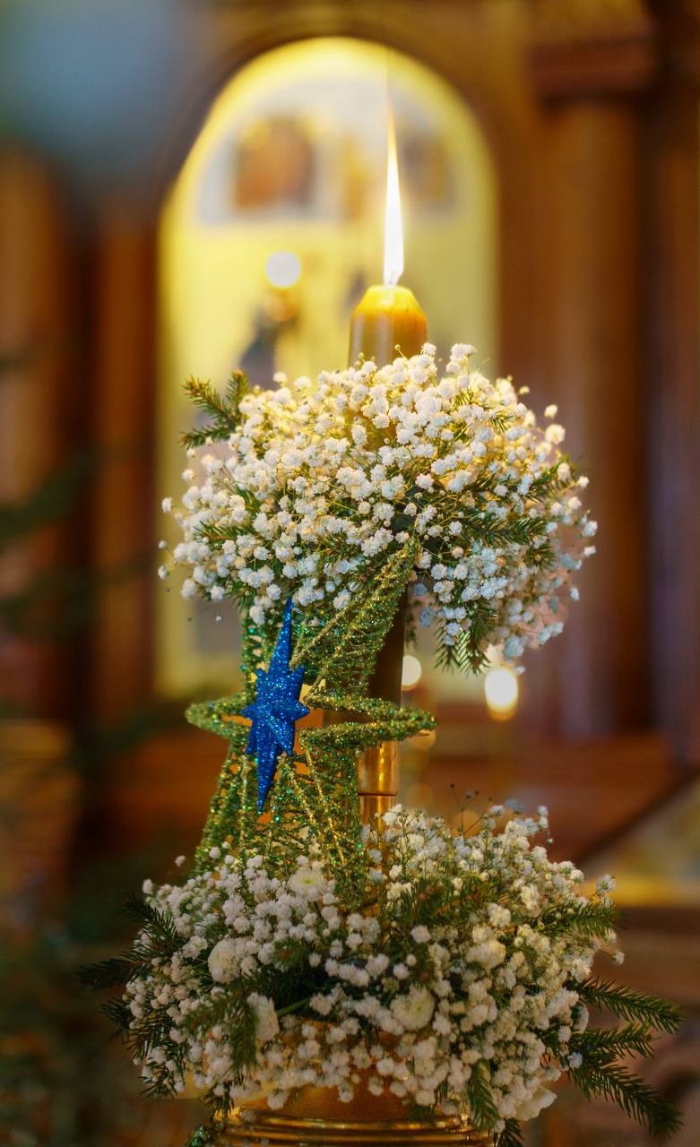 Служба накануне Рождества Христова особенная: после Царских часов совершается Великая вечерня с Литургией святителя Василия Великого. В самом конце богослужения на середину храма выносят свечу, символизирующую Вифлеемскую звезду. Её свет возвестил всему миру о появлении на свет Богомладенца.