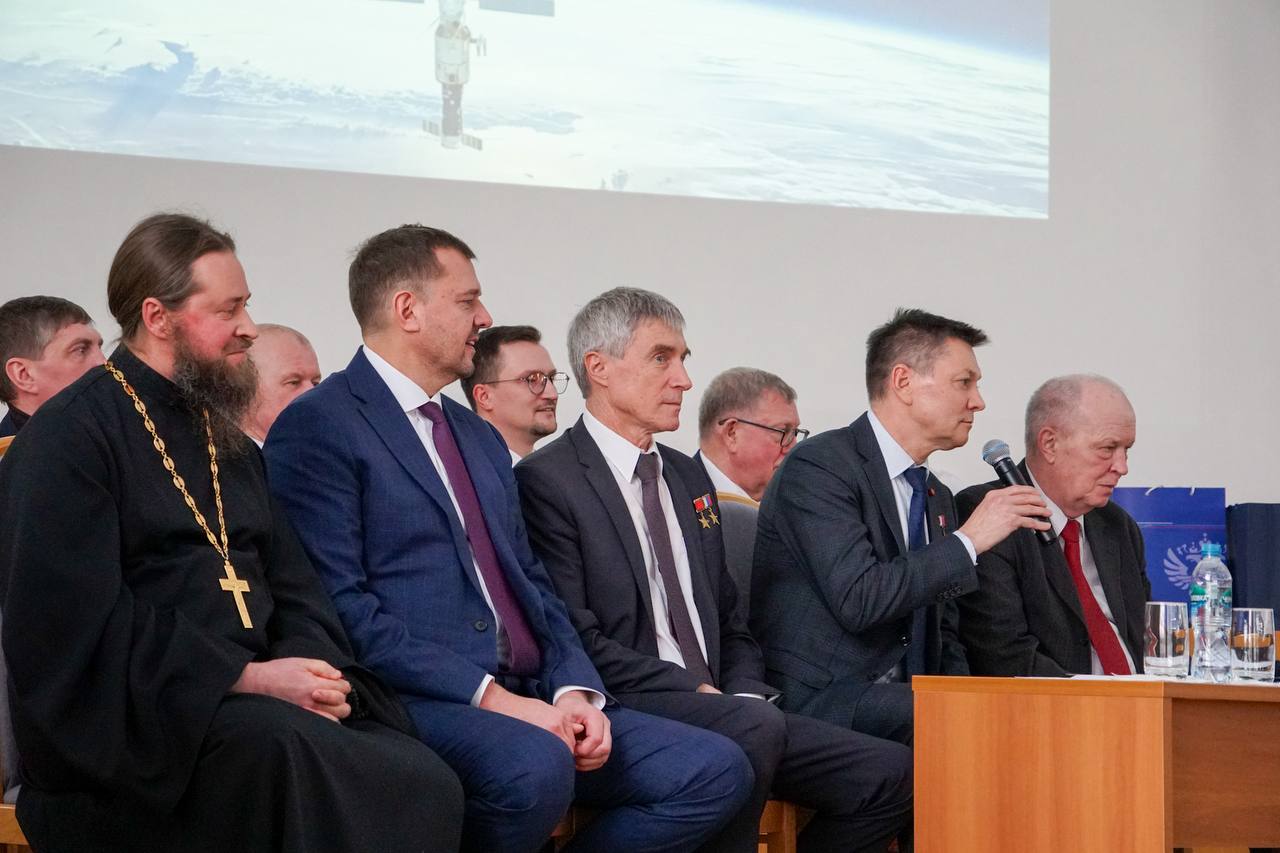 От имени коллектива РКК «Энергия» космонавтов и всех собравшихся поздравил Сергей Юрьевич Романов, первый заместитель генерального конструктора корпорации, главный конструктор пилотируемых космических комплексов.