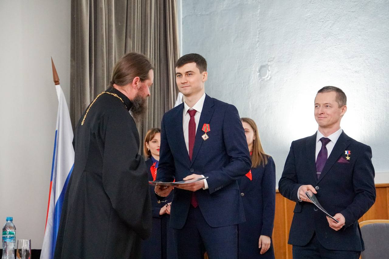 В свою очередь отец Пафнутий поздравил всех собравшихся со святыми днями, с приближающимся праздником Богоявления, и обратил внимание на то, что космонавтика объединяет многие страны, сотни организаций, сотни тысяч сотрудников. Но еще космонавтика объединяет два почти несовместимых обстоятельна. С одной стороны, космонавтика – это очень точная дисциплина. Можно сказать, доли миллиметром решают все. И в то же время, в космонавтике столько случайности, как нигде – случайностей, которых нельзя избежать, но к которым можно подготовиться. Экипаж Сергея Николаевича и Алексея Витальевича готовился с молитвой, с участием в Таинствах, с благословения в Троице-Сергиевой Лавры у мощей преподобного Сергия.
