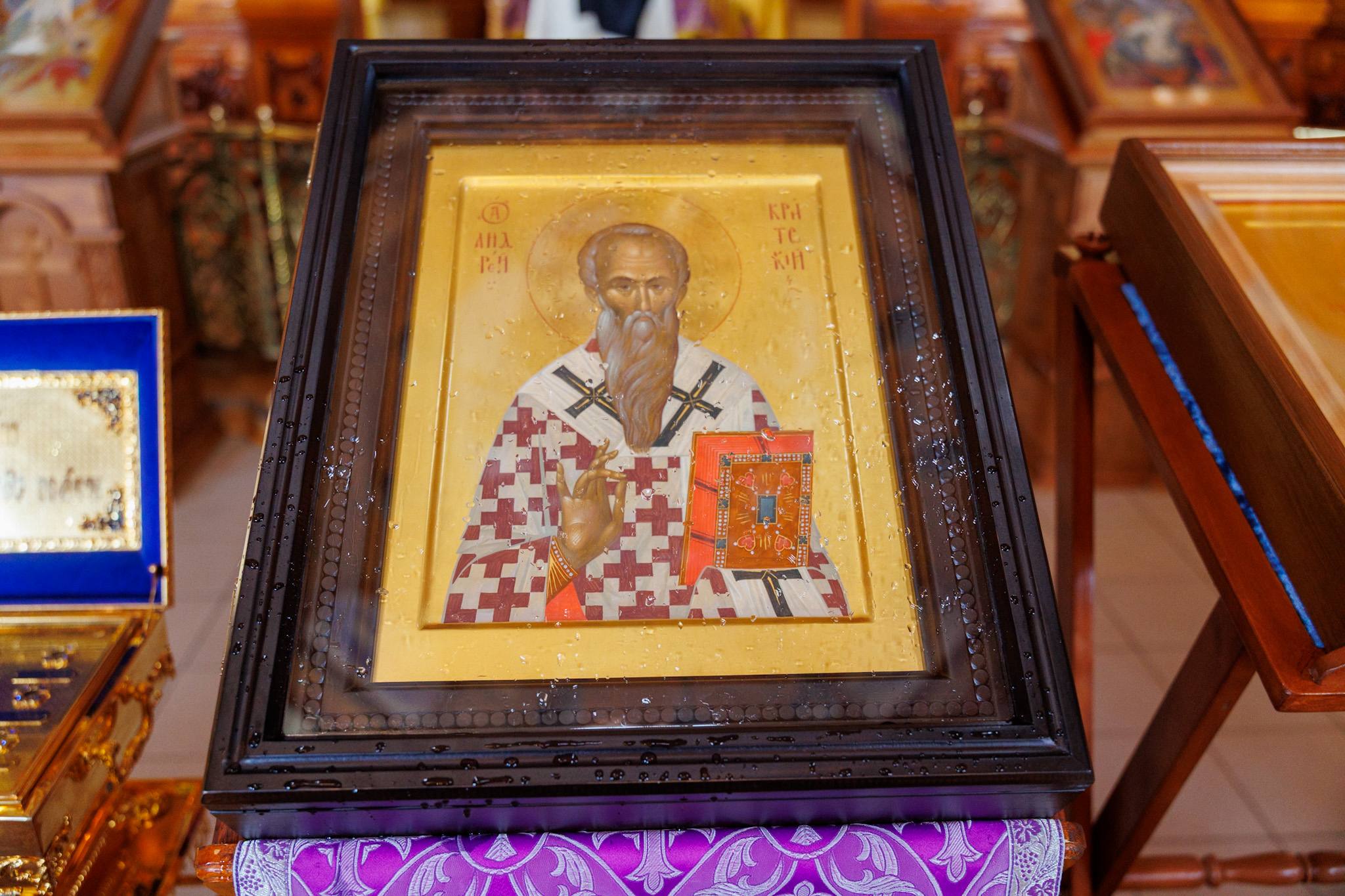 освятили написанную в мастерской Троице-Сергиевой Лавры икону прп. Андрея Критского, автора великого покаянного канона. Частичка мощей прп. Андрея сейчас находится с экипажем ТПК «СОЮЗ МС-28» на борту МКС.