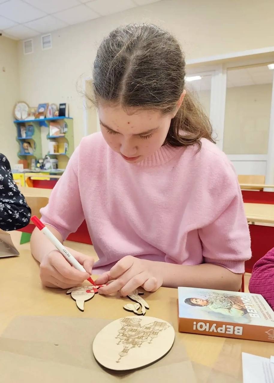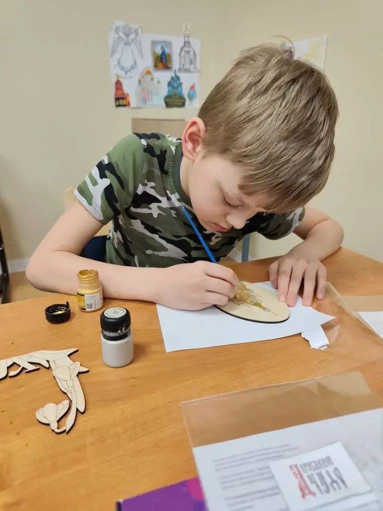 На творческой части ребята также приступили к подготовке к Пасхе: раскрашивали акрилом и акварелью деревянные заготовки с видом нашего храма.
