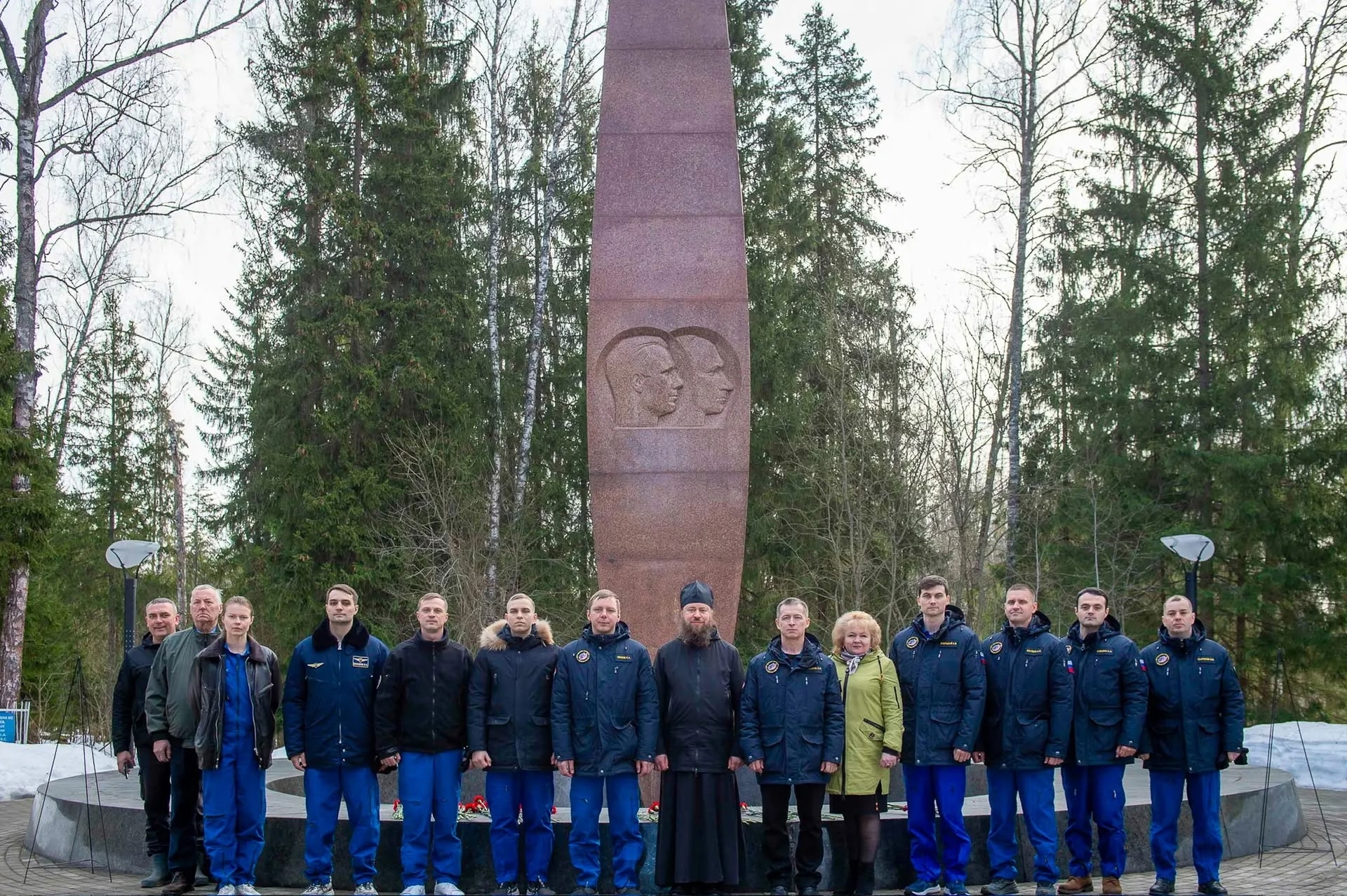 По традиции в этот памятный день космонавты возложили цветы к мемориалу.