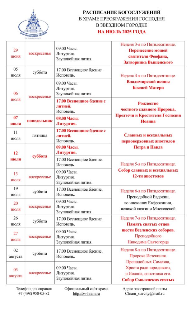 Расписание богослужений